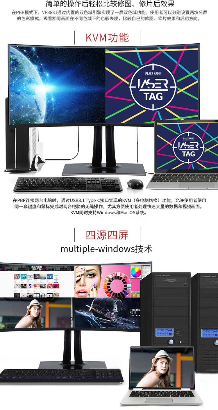 商品名称:优派电脑显示器曲面显示屏38英寸HDR准4K爱眼低蓝光游戏(VP3881)