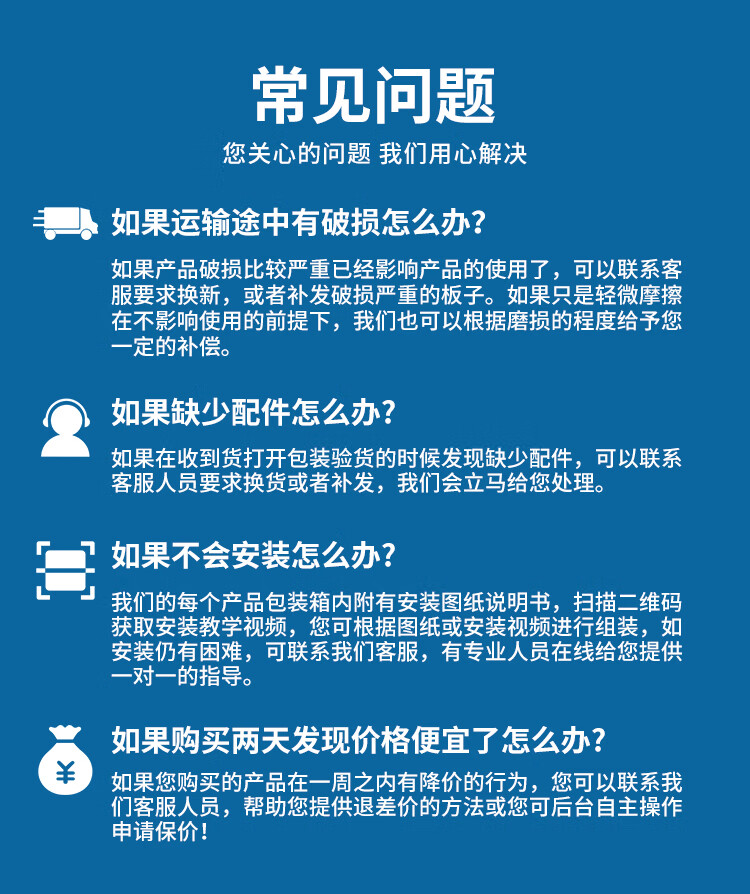 常规商品均支持7天无理由退换货,特殊商品及定制类产品不支持退换