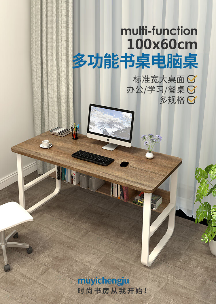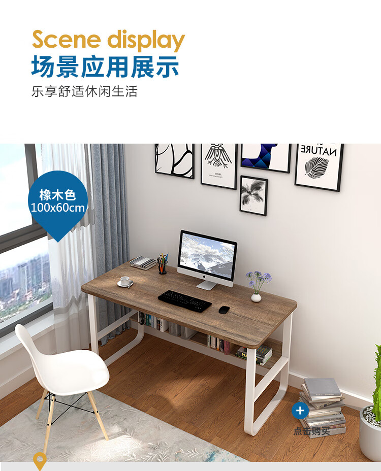 商品名称:电脑桌 钢木书桌电脑桌 书架电脑桌 板式双层(加宽)收纳现代简约学习桌台式桌子