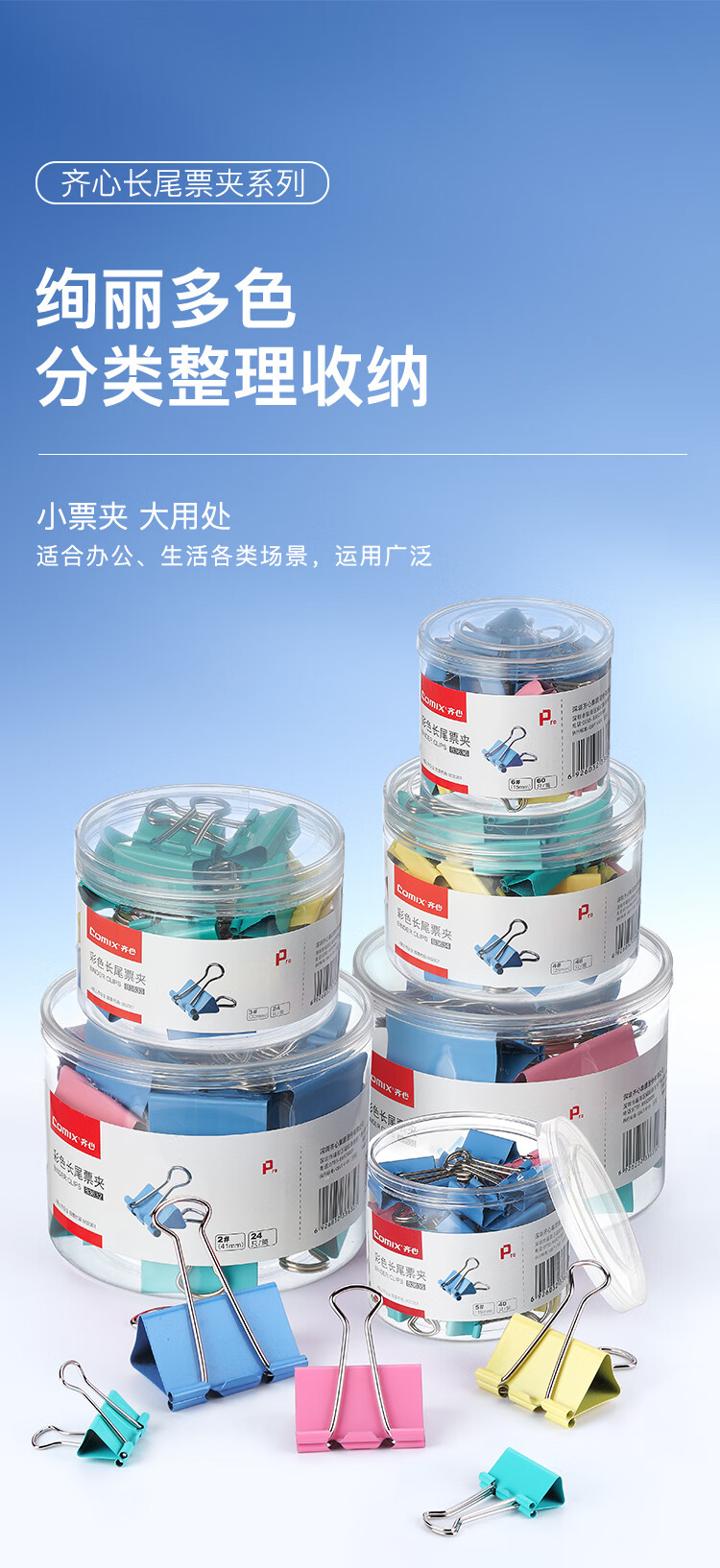 商品名称:齐心B3633 彩色金属长尾夹B3633 3#32mm