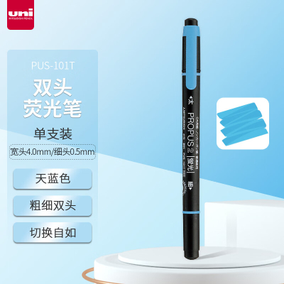 三菱PUS-101T双头荧光记号笔 天蓝色 1支/袋