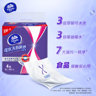维达厨房用纸 食品级厨房用纸 加厚厨房用纸 可水洗卷纸 85节*4卷
