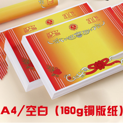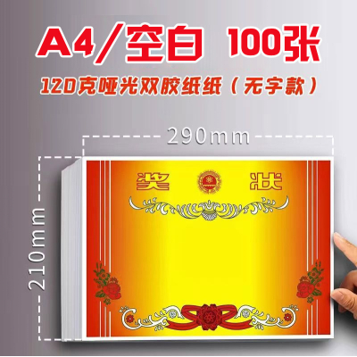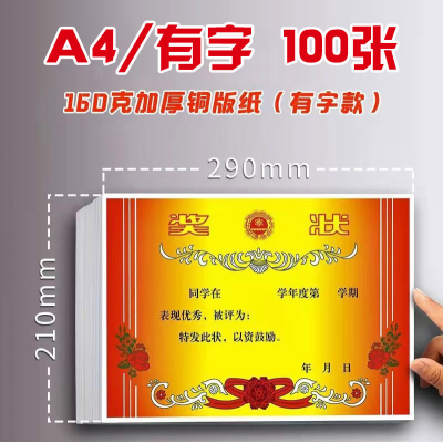 A4奖状纸 a4奖状纸 有字奖状证书100张