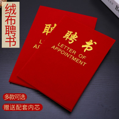 6K聘书 聘用书绒面 烫金聘书 封面外壳聘任书 聘书绒面