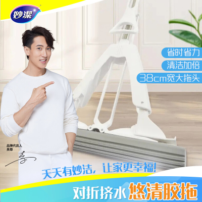 妙洁 38CM大号胶棉拖把家用对折式吸水挤水海绵拖把2个替换头