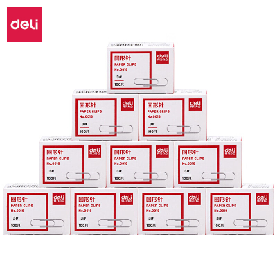 得力曲别针 3#金属回形针 镀镍防锈曲别针 100枚/盒 10盒装
