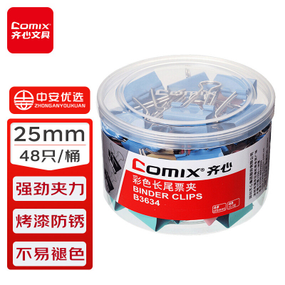 齐心B3634 彩色金属长尾夹25mm 48只/筒