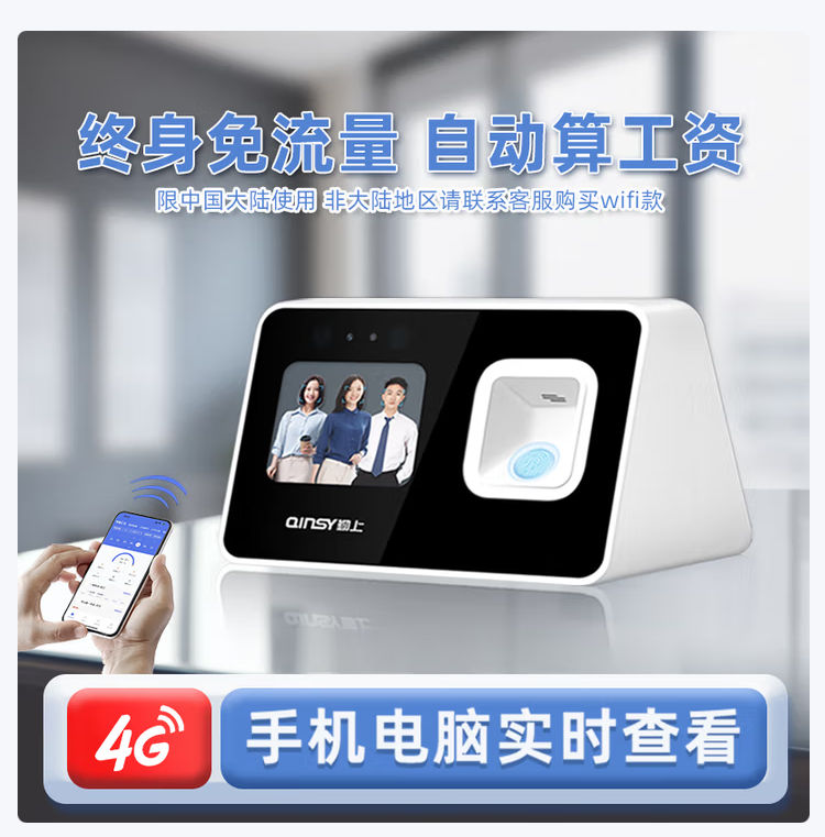 商品名称:勤上智能云打卡机考勤机人脸+指纹识别自带网络 多人识别