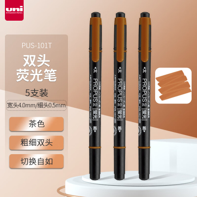三菱PUS-101T双头荧光记号笔 茶色 5支/袋