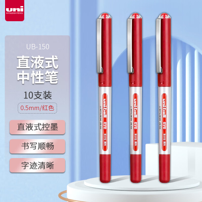 三菱UB-150中性笔0.5mm签字笔直液式中性笔10支