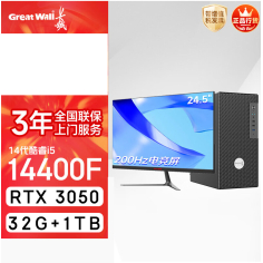 长城凌云DHC88台式电脑(i5 14400F/RTX3050显卡 32G+1T +24.5英寸200Hz电竞屏)