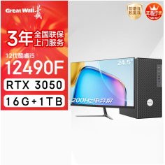 长城凌云DHC88台式电脑(i5 12490F/RTX3050显卡 16G+1T +24.5英寸200Hz电竞显示器)