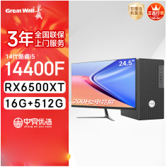 长城凌云DHC88台式电脑(i5 14400F/RX6500XT 16G+512G 24.5英寸200Hz电竞屏)